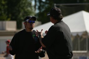 力はあるチームです。何かのきっ かけ一つで良い方向に変わるはずです。と話は変わりますが昨日グランドでエド・ノートル(ロックスの3塁コーチで監督のビル・バックナーの補佐をしている 人です。エドはレッド・ソックスの3Aの監督を始めマイナーリーグを知り尽くす重鎮です)と野球の戦術について話をしていたところ・・・